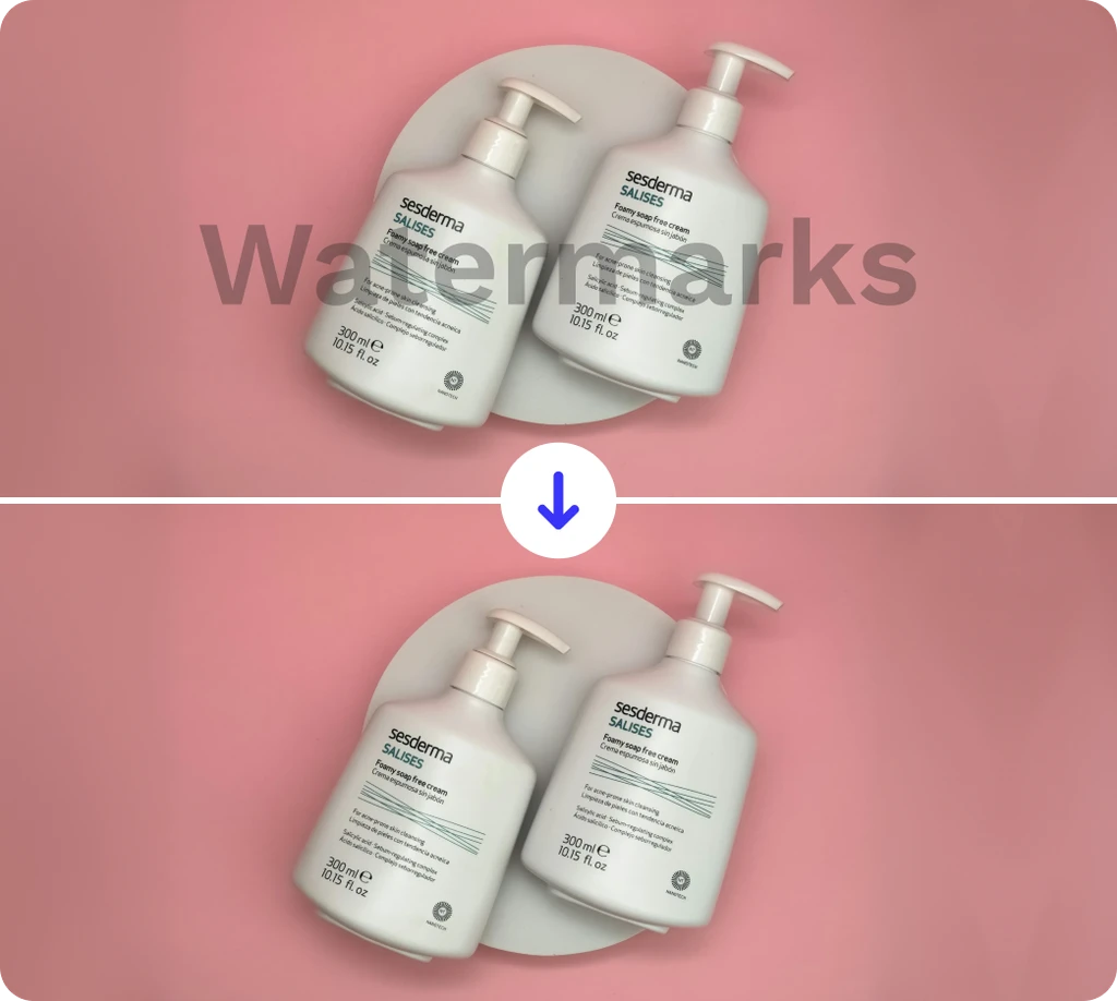 Rimuovi testo, filigrane e parole indesiderate per immagini di qualità professionale.